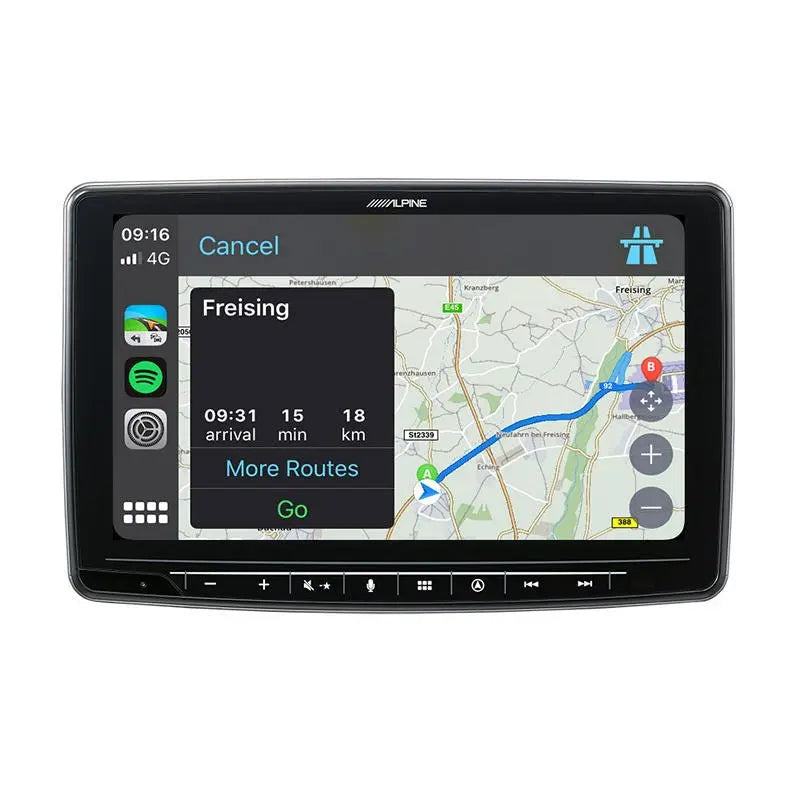 Alpine iNE-F904DC är en 1-DIN stereo med 9″ superskarp touchscreen som har inbyggd TomTom navigation och även Android Auto + Apple CarPlay.
