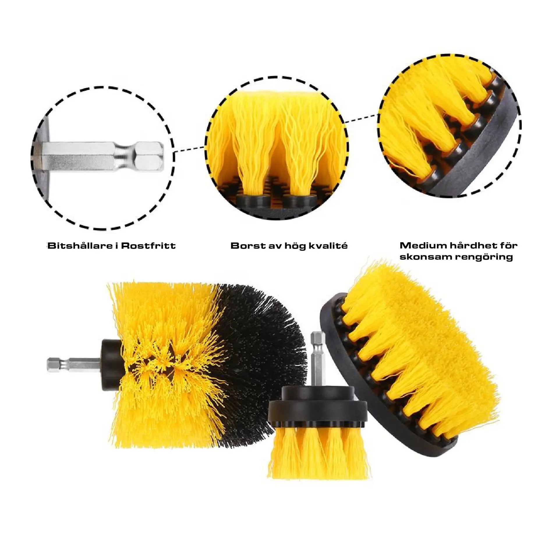 3st praktiska rengöringsborstar för borrmaskin/skruvdragare med borst i medium hårdhet.