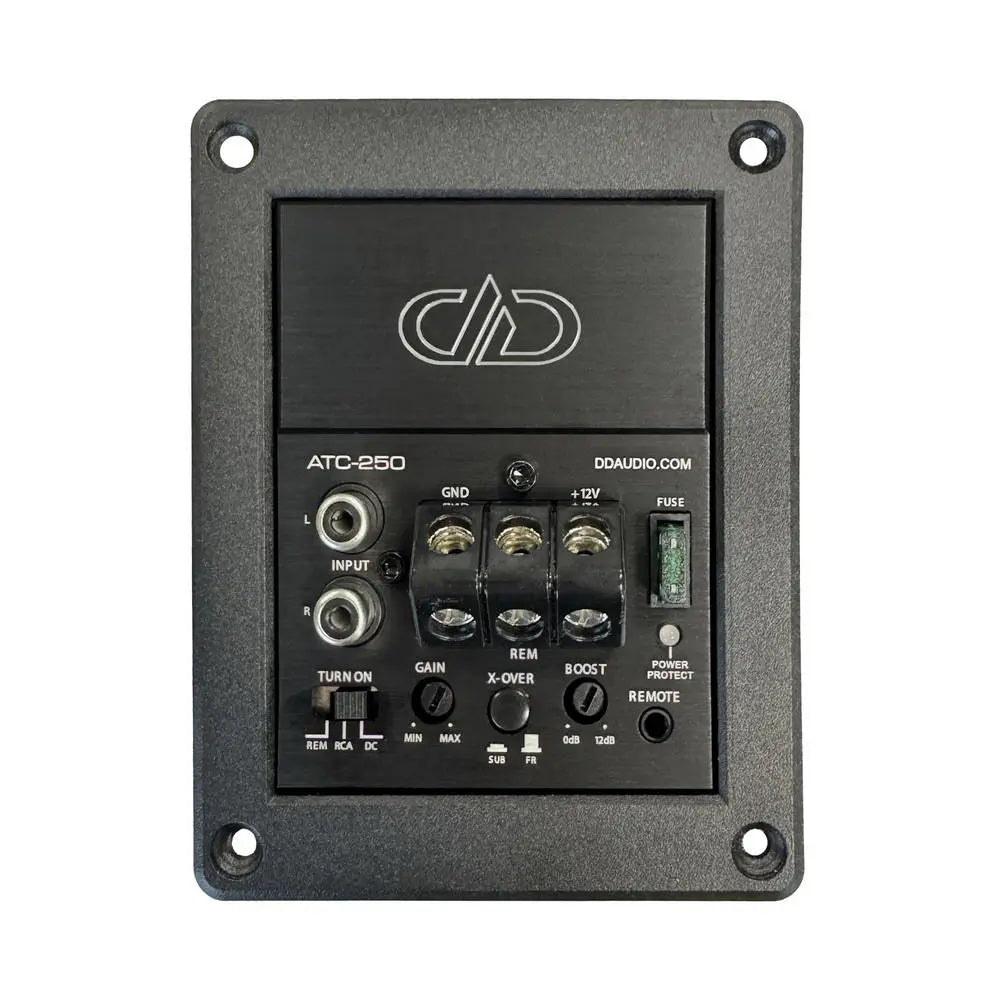 DD Audio ATC-250 är ett kraftfullt inbyggnadsslutsteg som är utformat för att ersätta den ursprungliga terminalen på DD Audios LE-serie baslådor. Installationen är enkel och snabb: ta bort den befintliga terminalen, lossa eller klipp bort kablarna från terminalen, och anslut sedan lådans kablar till ATC-250 högtalarkablar.