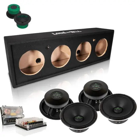 Komplett extremt kraftpaket från DeafBonce i topp-serien Arnold med 4 st 8" midbasar, 2 st diskanter och en låda.