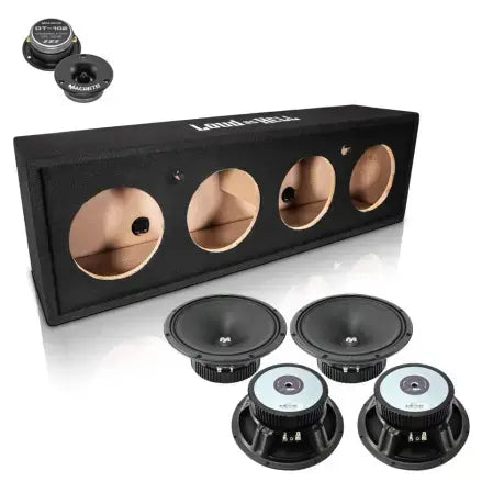 Vill du bygga ett system som spelar högt och klart – utan att behöva välja komponenter själv? Då är Machete Fight 80 – Loud As Hell Raggarplanka ett klockrent val. Här får du en genomtänkt byggsats med fyra kraftfulla 8-tums midbasar, två sylvassa diskanter och passiva kondensatorfilter – färdiga att montera i en robust Loud As Hell-planka klädd i svart filt. En optimal lösning för dig som vill spela högt, snabbt och med attityd!
