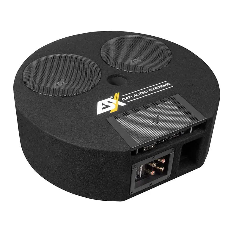 ESX DBX800Q är en riktigt inovativ portad baslåda med dubbla 8″ basar monterade i en rund låda tänkt att ersätta ditt reservhjul.