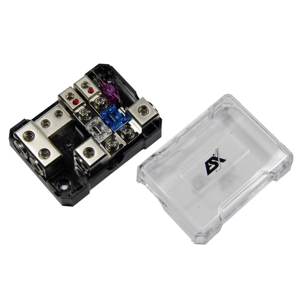 ESX DFD2/2G Kombinerad Säkringshållare och Jordblock – Komplett Strömlösning för Dubbla Slutsteg
