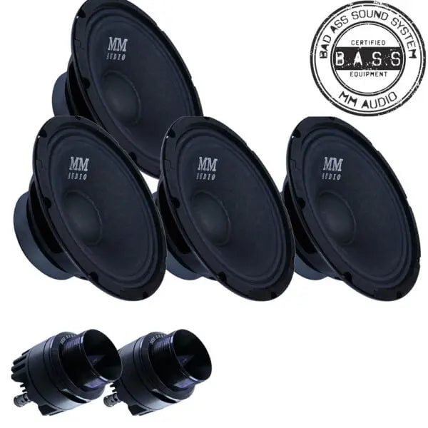 MM Audio Street PRO 8 kit är ett SPL paket med 4st feta 8″ middar och 2st rejäla horndiskanter, gjort för att spelas högt!