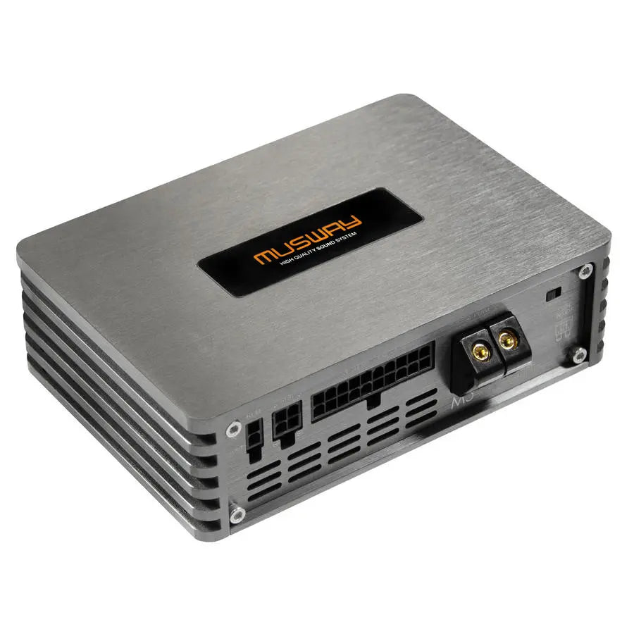 Musway M5 är utvecklad för att vara en komplett ljudlösning i ett kompakt format. Med sin 5-kanaliga design är den perfekt för att driva ett komplett biljudssystem bestående av 4 dörrhögtalare och en subwoofer – allt från en enda förstärkare.