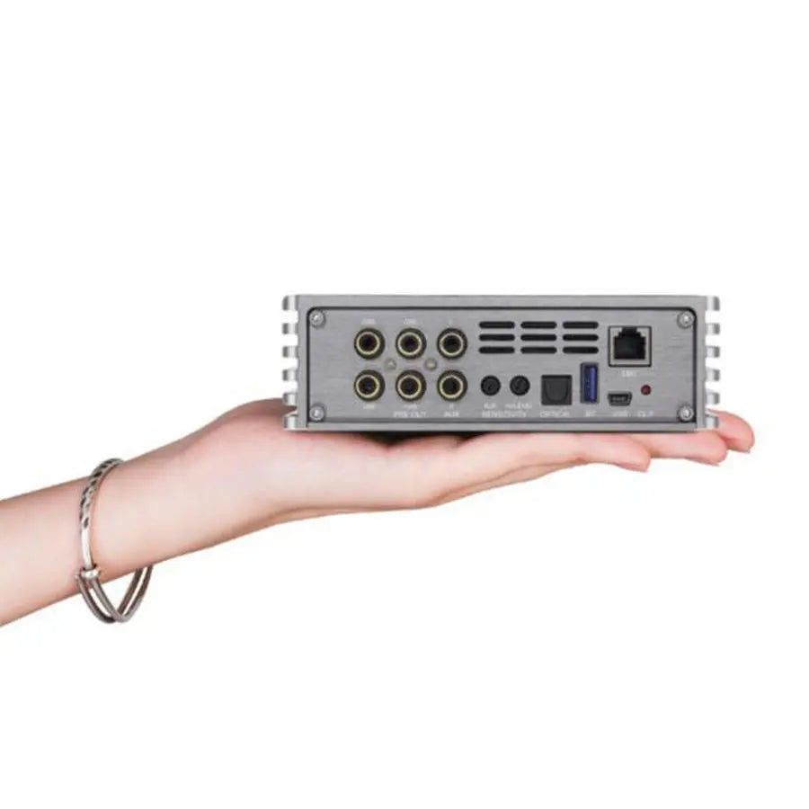Den inbyggda 9-kanaliga DSP-processorn ger omfattande ljudjusteringsmöjligheter med 31-bands equalizer, tidskompensation och justerbara filter.