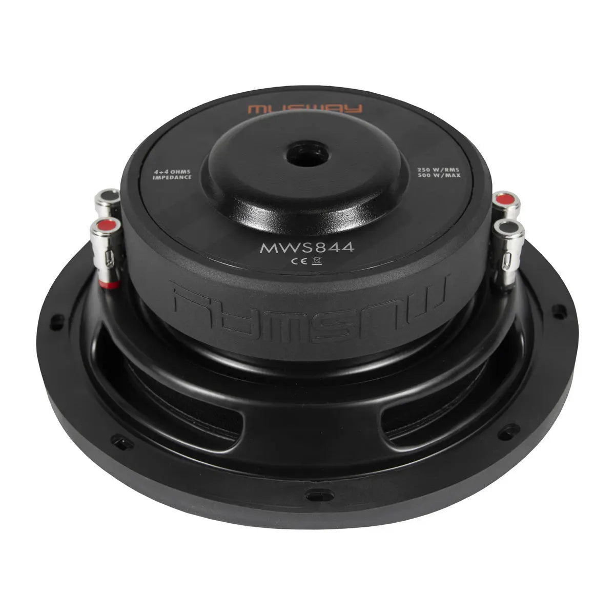 MWS844 har en effekthantering på 250 watt RMS och 500 watt max, vilket gör den kapabel att leverera starka basprestationer utan kompromisser. Basen är konstruerad för att prestera i både slutna och portade lådor, vilket ger flexibilitet för olika typer av installationer.