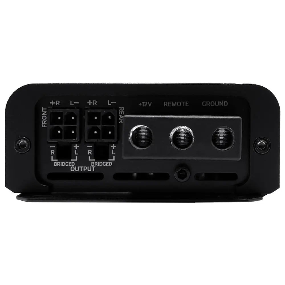 Förstärkaren är kompakt och utformad för att passa i trånga utrymmen. Med högnivåingång med autostart kan den anslutas direkt till fabriksmonterade ljudsystem utan att extra fjärrstyrd påslagning behövs.
