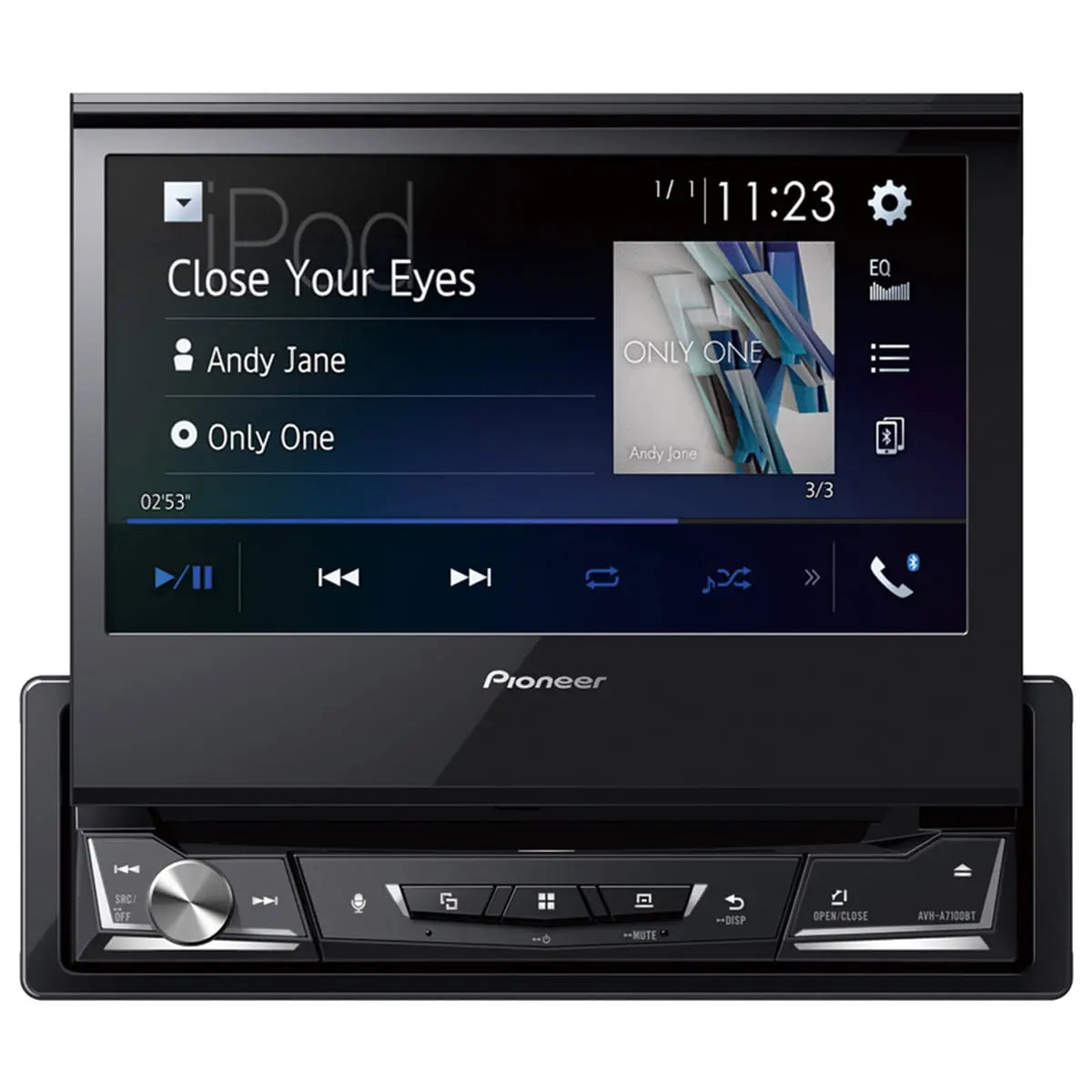 Pioneer AVH-A7100BT, Stilren multimediaenhet med 7″ motoriserad touch skärm.