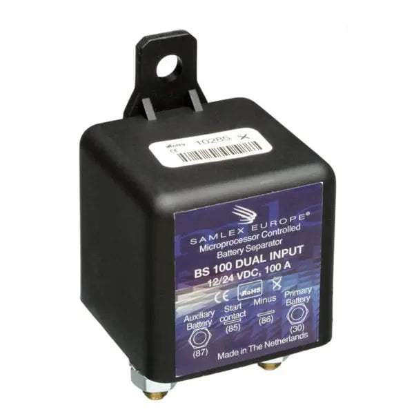 Samlex BS 100 DUAL är ett smart microprocessor styrt skiljerelä som används när du kopplar in flera batterier i ditt fordon.