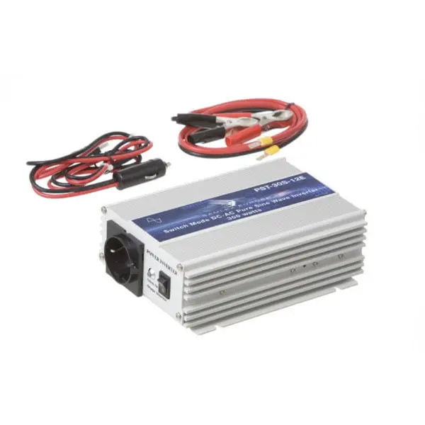 Samlex PST-30S-12E är en högeffektiv DC-AC inverter som konverterar 12V DC till 300Watt ren sinusvåg AC 230V 50Hz.