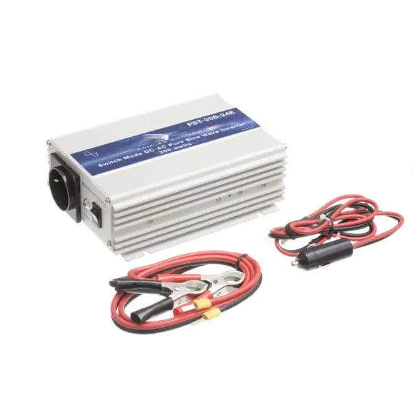 Samlex PST-30S-24E är en högeffektiv DC-AC inverter som konverterar 24V DC till 300Watt ren sinusvåg AC 230V 50Hz.
