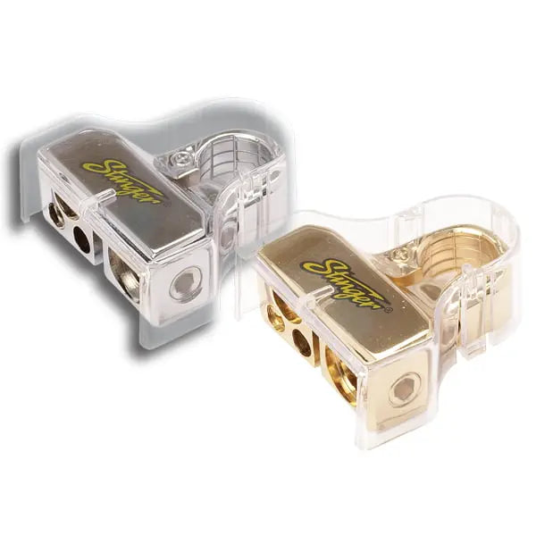 Stinger SPT53302 är en minuspol för batteri, perfekt för bil- och ljudinstallationer som kräver flera strömutgångar. Den är utrustad med fyra utgångar: en för 50 mm² kabel och tre för mindre belastningar. Tillverkad i ShocKrome-finish för både hållbarhet och stil, gör den det enkelt att ansluta flera elektriska komponenter. Med sin lätta vikt och enkla installation är SPT53302 perfekt för att optimera bilens elektriska system.